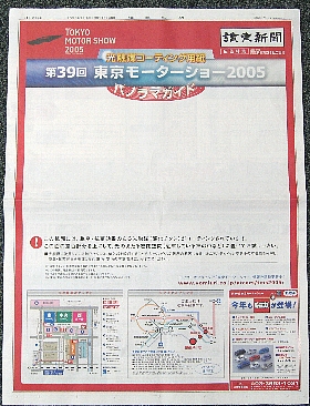 The Yomiuri used the new paper for a special advertising supplement for the 2005 Tokyo Motor Show (see photo). The supplement was distributed at the venue from Oct. 22 through Nov. 6, and was inserted into the Yomiuri¡Çs daily newspaper for distribution within Tokyo's 23 wards.