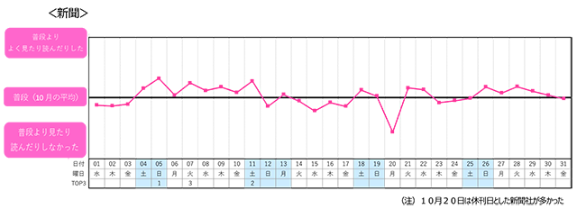 新聞や新聞社が発信する情報への接触が高まった上位3日は、以下の通りです。