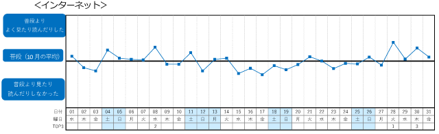 月1回以上新聞を読んでいる18歳以上69歳以下の男女計300人を対象に、普段と比べてメディアによく接したかどうかを毎日尋ねるウェブ調査です。毎月のトピックスを翌月下旬に発表しています。2017年10月1日から19年9月30日まで実施し、新型コロナウイルスの感染拡大に伴うメディア接触状況の変化を調べるため、20年6月より調査を再開しました。新聞、テレビ、インターネットのメディア別に、当該月平均と比較したデーリーの接触状況を公表します。事件や事故、政治・経済の状況に加え、大きなイベントや正月など消費行動にもつながる各種タイミングでのメディア接触、季節変動などを観測します。