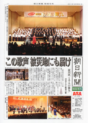 100人の合唱団と共に、約900人の来場者がベートーベンの交響曲第9番「歓喜の歌」を歌う演奏会「1千人の第九」は、横山和徳所長が大阪市の地域活性化事業の企画依頼を受けて始めました。04年に実施して約300人の集客があったことから、05年からは市の継続的な文化事業として行われ、2014年で10回目となります。これを機に区民合唱団が結成されるなど、新聞販売所が地域の文化事業の中核として機能しています。