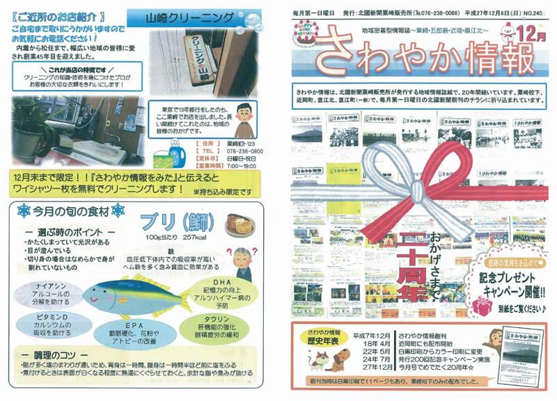 また、環境保護やリサイクルの推進につながる古紙回収に20年前から取り組んでおり、「さわやか情報」を通じて読者に広く提供を呼び掛け、その収益金を粟崎小学校のPTAに寄付している。紙面を通じて住民の交流を活発にするとともに、地域の活性化に役立っている。