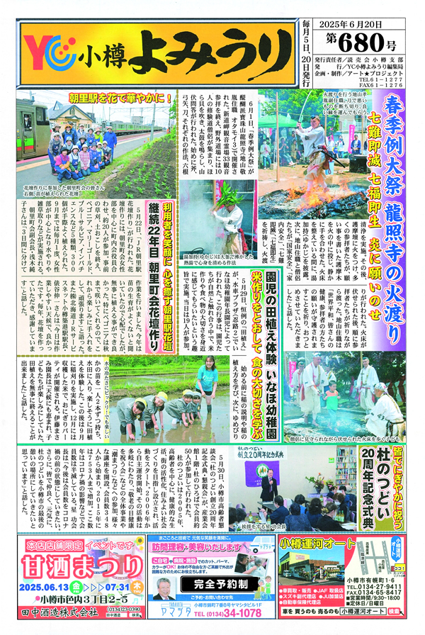 北海道札幌後志地区の小樽市内の読売センター6店は39年前、本紙を補完し、より地域に根差した情報を発信するミニコミ紙を創刊した。発行頻度は当初の月1回から現在では月2回となり、今年6月20日号で通算第680号を迎えた。創刊時は販売所長自ら取材・紙面制作を行っていたが、労働環境の変化により一時発行継続が困難となった。しかし読者から継続を強く希望する声が寄せられ、現在は地元企業の協力を得ながら、6600部を発行している。