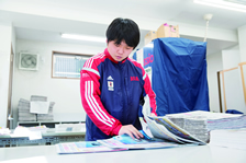 新聞配達は天気の影響を受けるから大変だ、とうかがっていると、とつぜんのゲリラごう雨になりました。すると所員のみなさんが用意していた夕刊の一部一部に大急ぎで雨よけのビニールをかけ始めたのです。私も手伝ってみましたが、全て手作業でとにかく手間がかかります。でも紙でできている新聞をお客様にぬらさずお届けしようという気配りを感じて、あたたかい思いやりに、「ありがとう」と思いました。